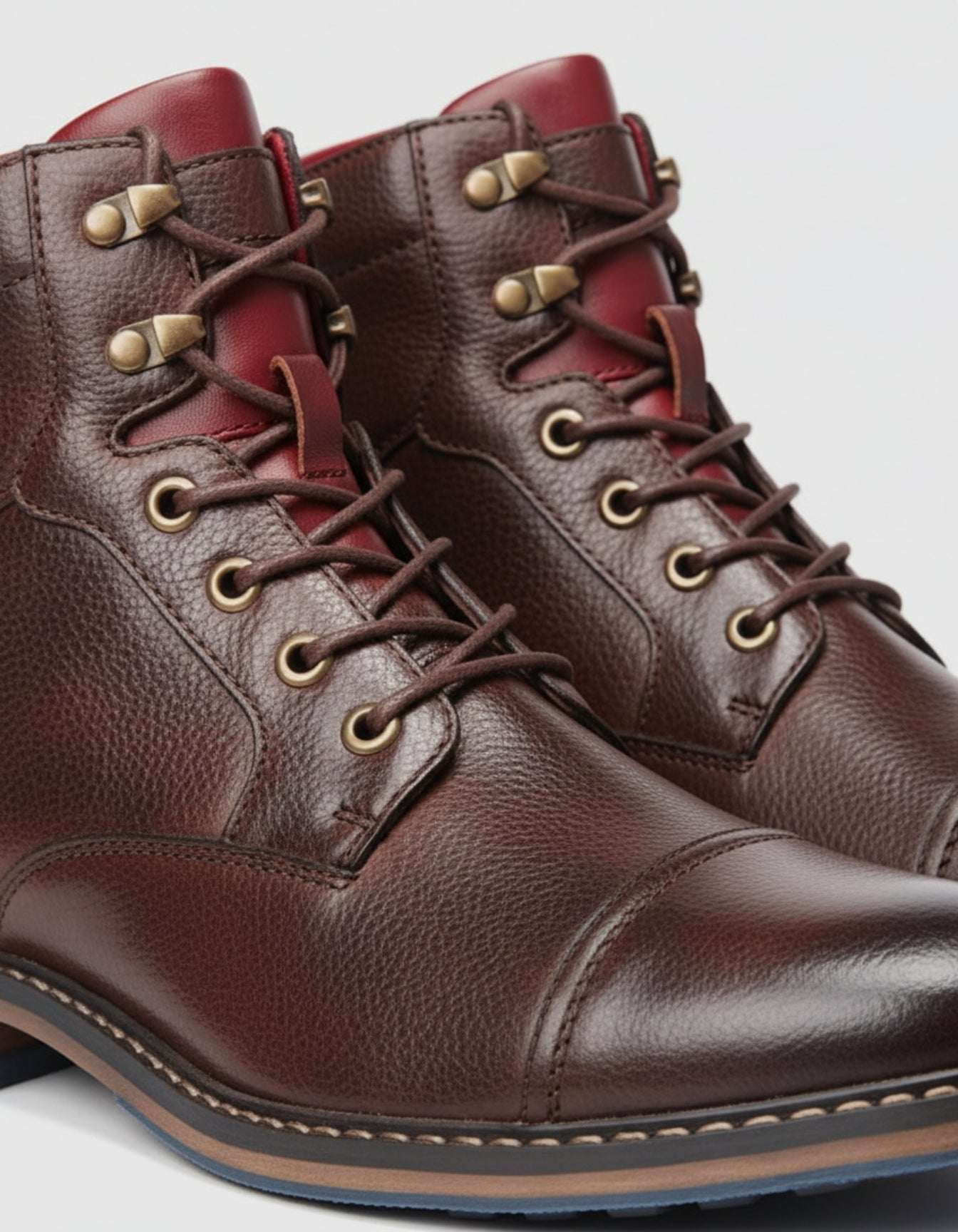 Designed for enduring wear, the Heritage Legacy Field Boots blend rugged structure with refined ease. Crafted from full-grain pebbled faux leather, they offer resilience and comfort in equal measure. The contoured ankle, capped toe, and hand-stitched welt reflect meticulous craftsmanship rooted in traditional field design. A durable sole ensures steady footing across seasons, from autumn streets to mountain paths.
